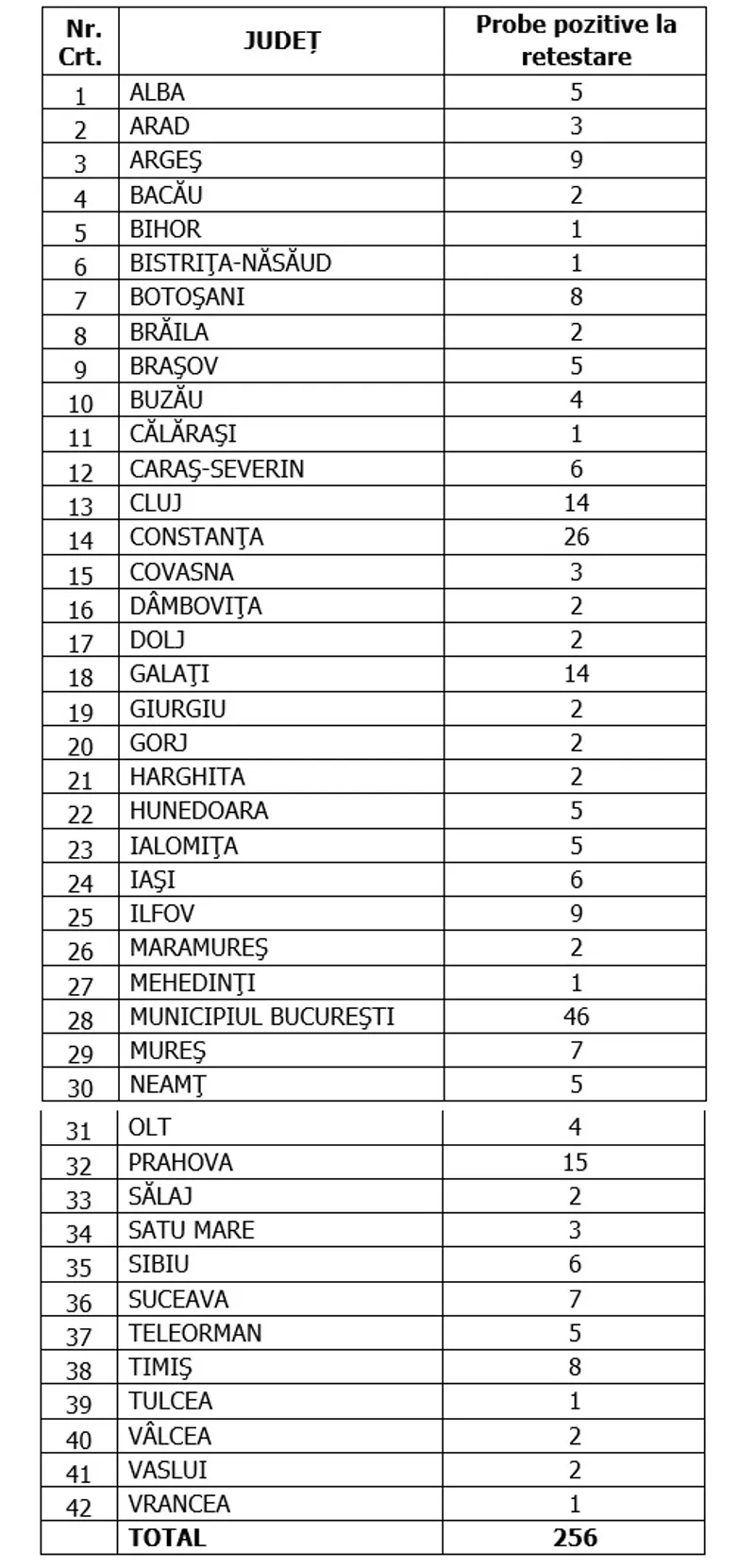 Distinct de cazurile nou confirmate, în urma retestării pacienților care erau deja pozitivi, 256 de persoane au fost reconfirmate pozitiv. În urma testelor efectuate la nivel național, față de ultima raportare, au fost înregistrate 953 cazuri noi de persoane infectate cu SARS – CoV – 2 (COVID – 19), acestea fiind cazuri care nu au mai avut anterior un test pozitiv.