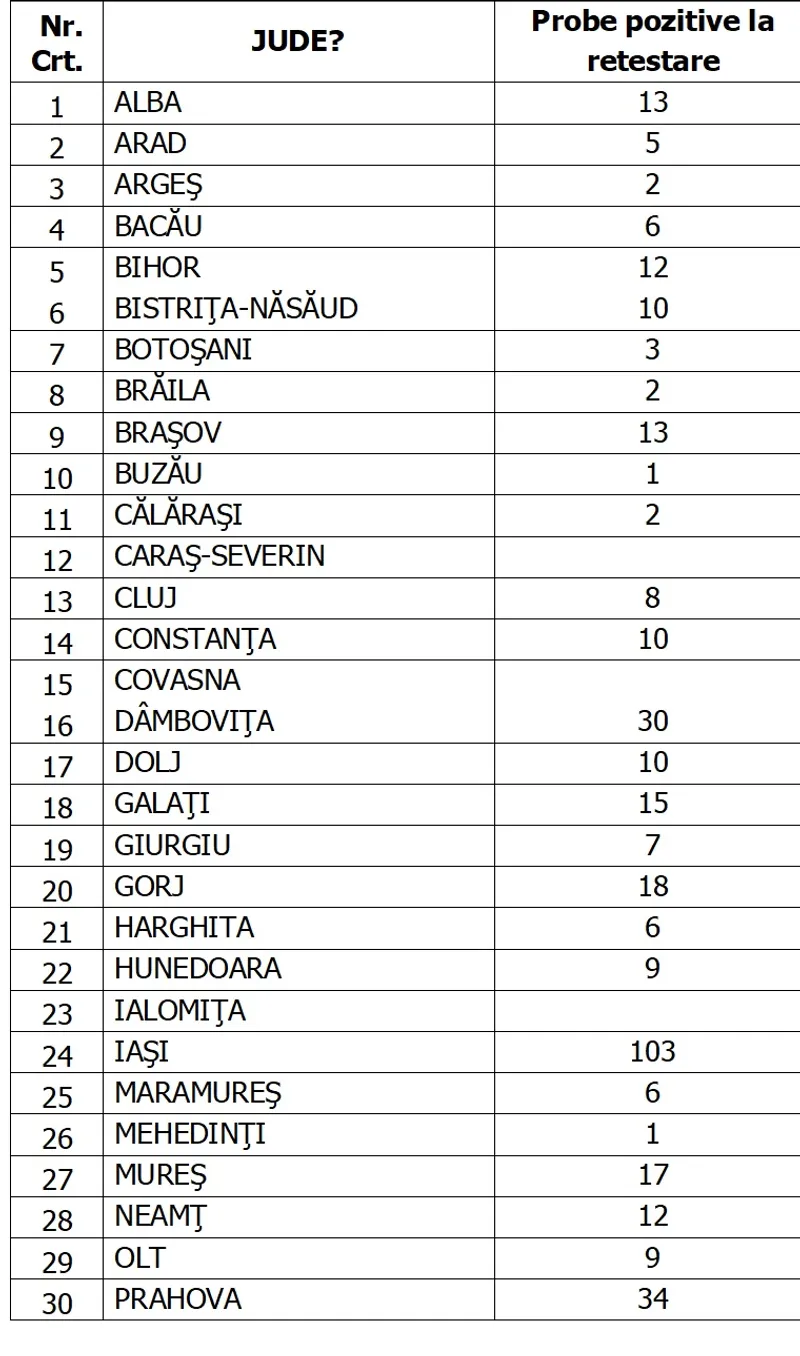 Distinct de cazurile nou confirmate, în urma retestării pacienților care erau deja pozitivi, 565 de persoane au fost reconfirmate pozitiv.
