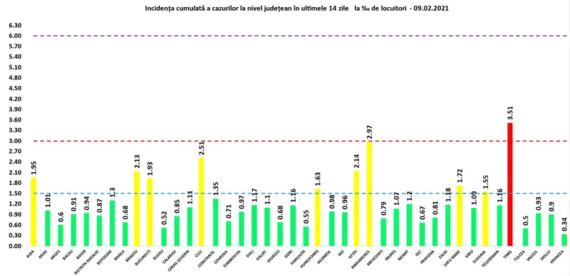 Județul Timiș este singurul care rămâne în scenariul roșu, cu o incidență care continuă să crească - 3,51 la mia de locuitori.