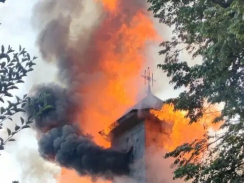 Potrivit sursei citate, biserica, cu o înălţime de aproximativ 15 metri şi structură de lemn, a ars în totalitate.