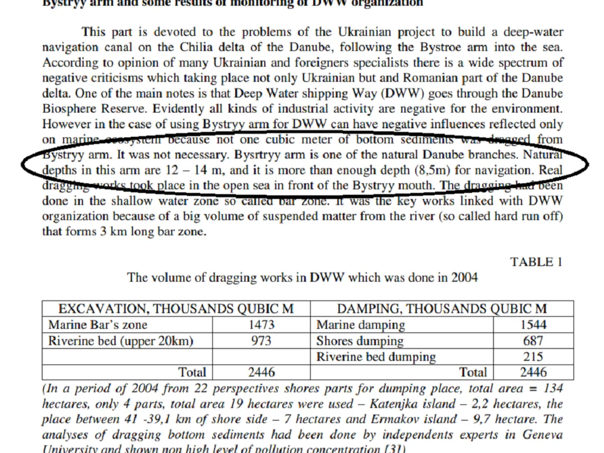 Pe de altă parte, un raport din 2005 al Comisiei Economice a Organizației Națiunilor Unite pentru Europa (UNECE), scris de Dr. Nikolai Berlinski, de la Institutul de Biologie al Mărilor de Sud din cadrul Academiei Ucrainei, și care face referire la măsurători din 2004, punctează că „adâncimea naturală a Canalului Bîstroe este de 12-14 m, fiind suficient de adânc pentru navigație (8,5m)”.
