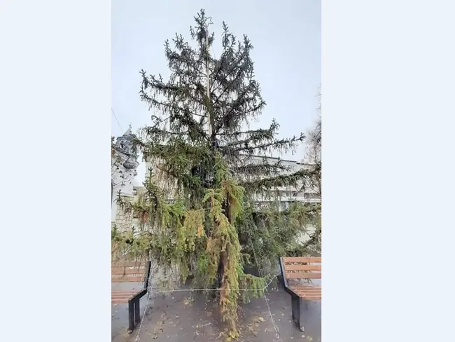 Bradul amplasat la Huși, val de reacții în rețelele sociale: E bradul de anul trecut?