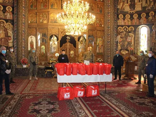 Au fost oferite alimente neperisabile, respectiv zahăr, ulei, făină, orez, paste făinoase, paste de tomate, carne, mezeluri, cozonac, fructe şi dulciuri, precum şi cărţi de zidire sufletească, revista eparhială "Călăuza Ortodoxă", Pastorala de Sfintele Paşti şi iconiţe cu Învierea Domnului.