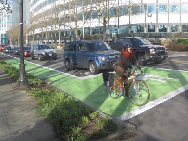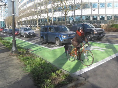 Și-n SUA, sunt cel puțin 20 de orașe mari care folosesc acest tip de marcaj pentru protecția bicicliștilor. Printre acestea, New York, Washington DC, Baltimore sau San Francisco.