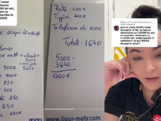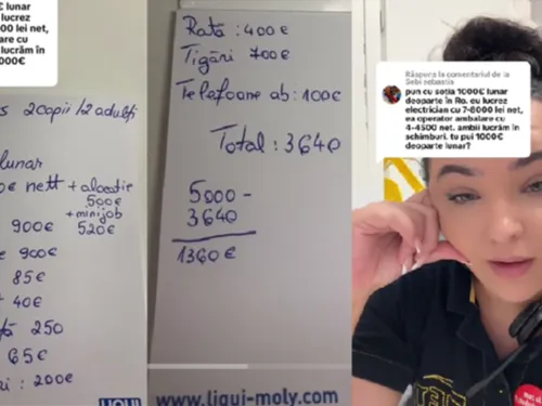 Veniturile lunare ale familiei ajung la 6.020 euro net. Femeia a detaliat și cheltuielile familiei într-o lună, iar cei mai mulți bani merg pe chirie, mâncare și țigări.