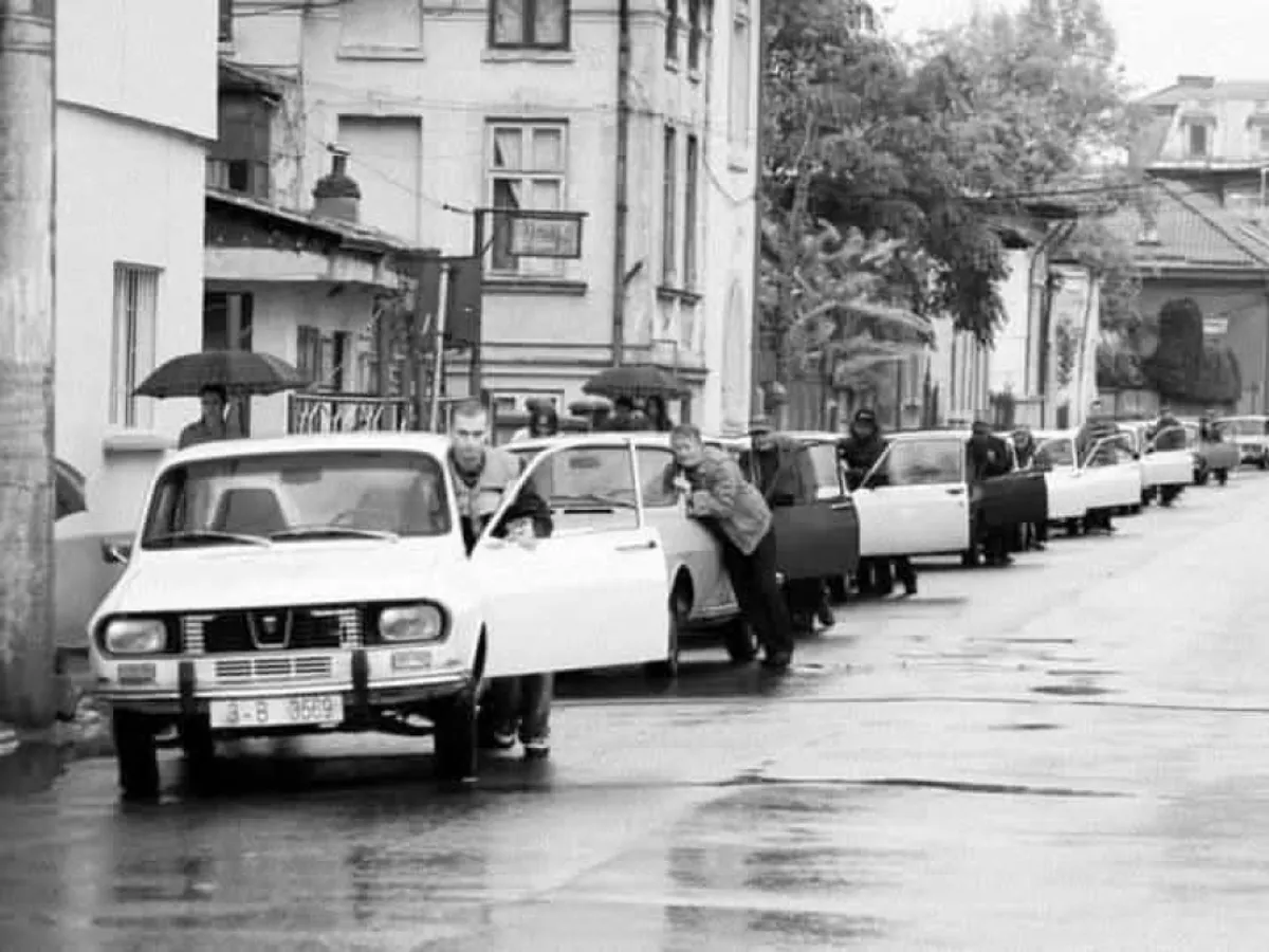 Românii care stăteau la coadă pentru butelie în "epoca de aur" - Sursa foto: Facebook/File de istorie