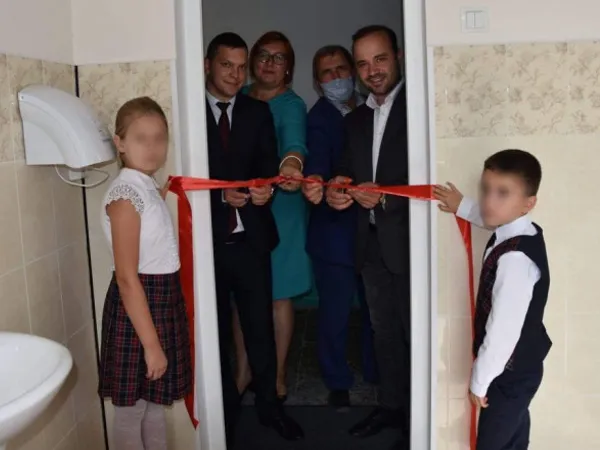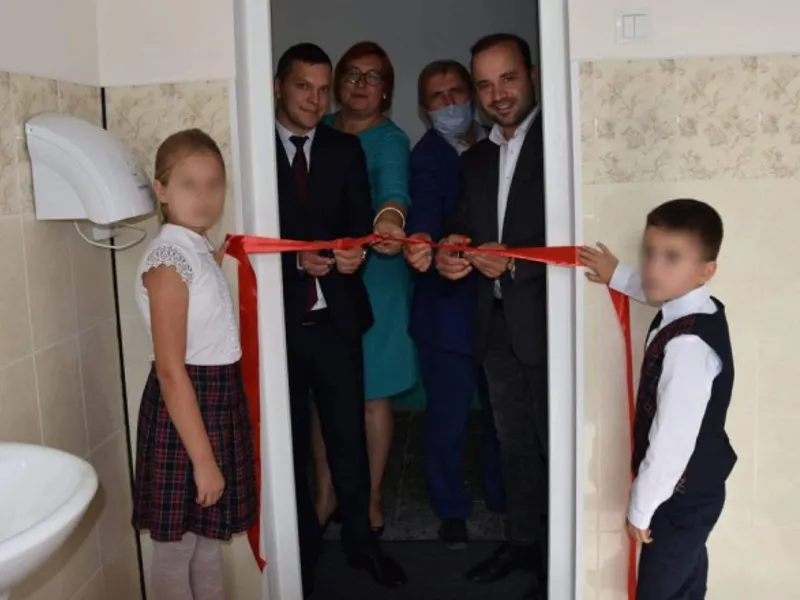 Toaleta unei școli rurale din Republica Moldova a fost inaugurată cu pâine, sare și panglică roșie, în condițiile în care și în țara vecină este în plină desfășurare campania electorală pentru alegerile prezidențiale.