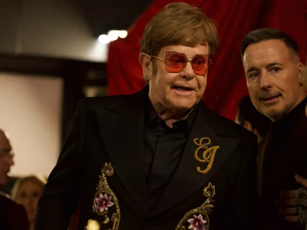 Adresându-se publicului, cântăreţul i-a mulţumit soţului său, David Furnish, care îl susține.