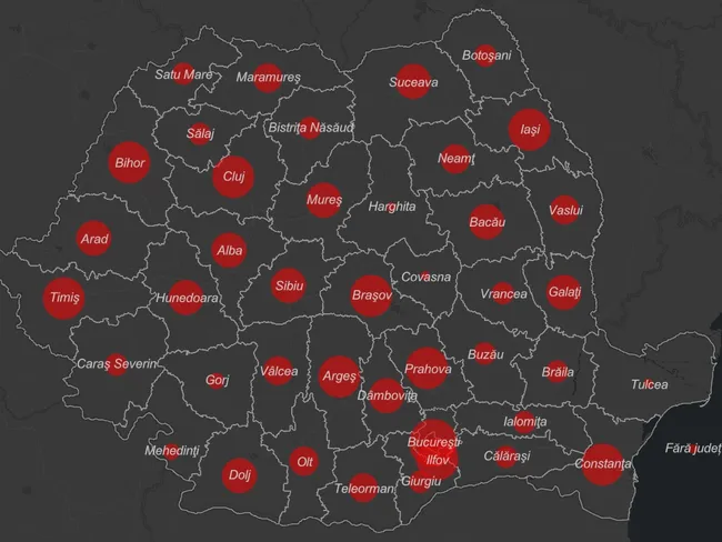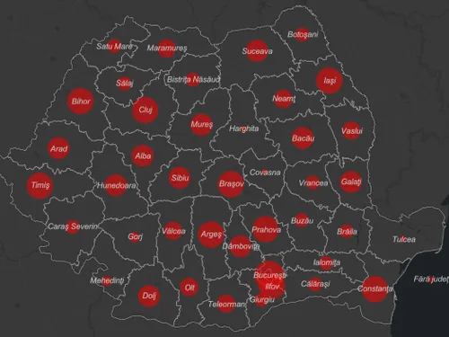 Cele mai puține cazuri de COVID raportate sunt în Covasna - 12.739, Harghita - 13.822, Tulcea - 13.667, Mehedinți - 15.626.