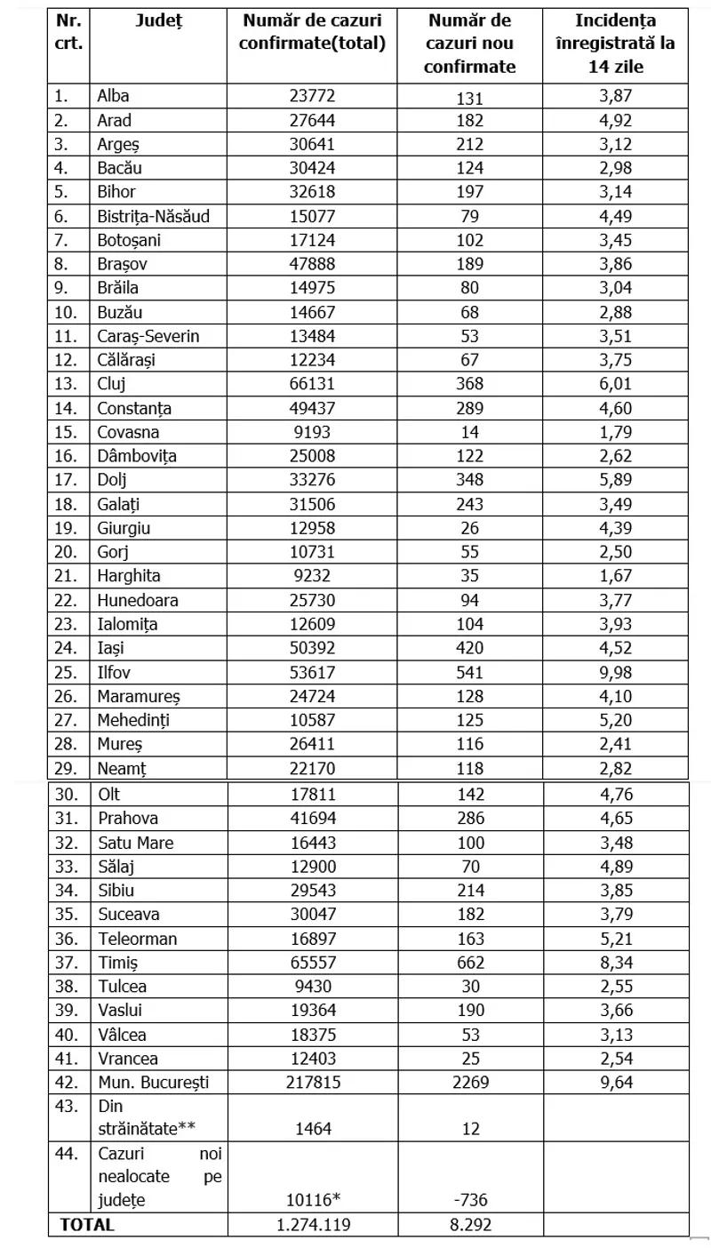 În ceea ce privește cazurile noi confirmate în ultimele 24 de ore, cele mai multe infectări au fost confirmate în:
