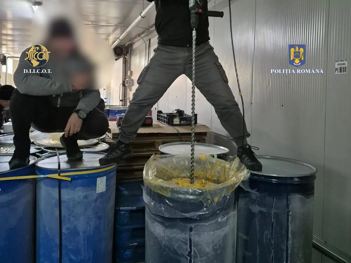 Captură record de cocaină în România. Drogurile, ascunse în butoaie cu fructe congelate