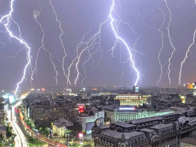 Municipiul Bucureşti şi alte opt judeţe - Argeş, Caraş-Severin, Dolj, Giurgiu, Gorj, Prahova, Teleorman şi Vâlcea - au fost afectate de vânt și ploi torenţiale, iar pe alocuri a căzut și grindină, în ultimele 24 de ore.
