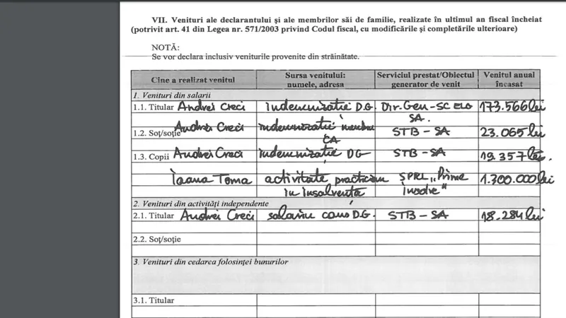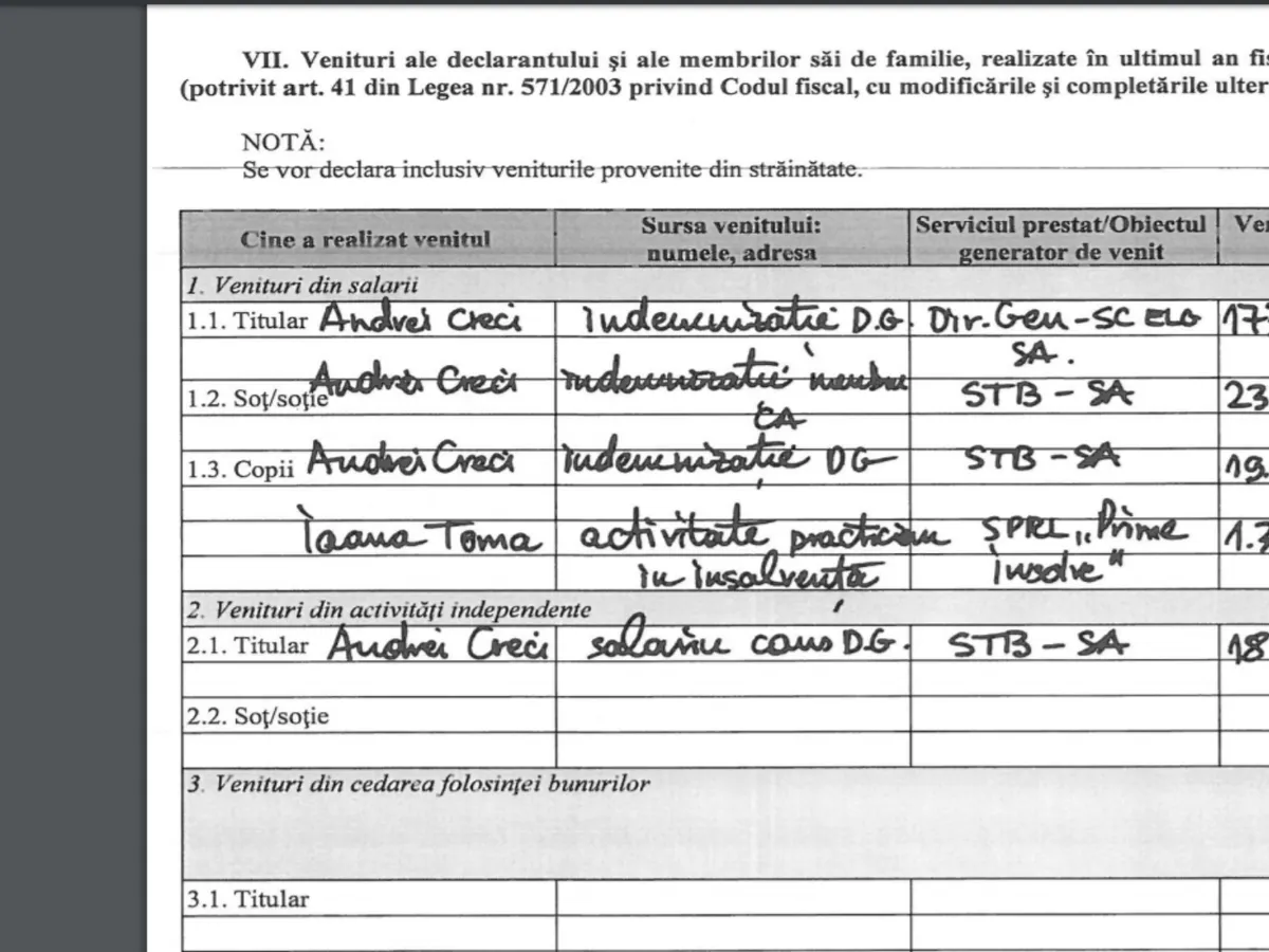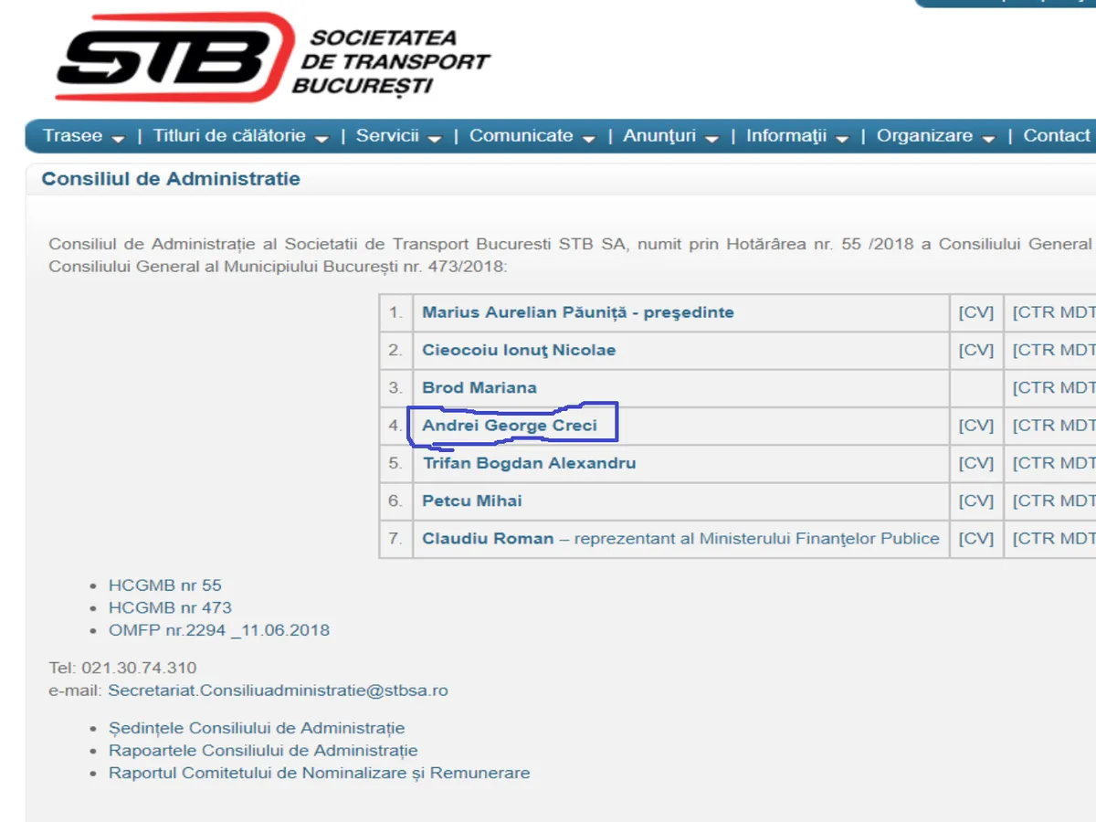 În total, veniturile, lunare ale lui Creci de la STB sunt de 3.200 de euro pe lună. Menționăm că și în acest moment, Andrei George Creci este membru în Consiliul de Administrație al STB.