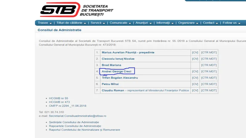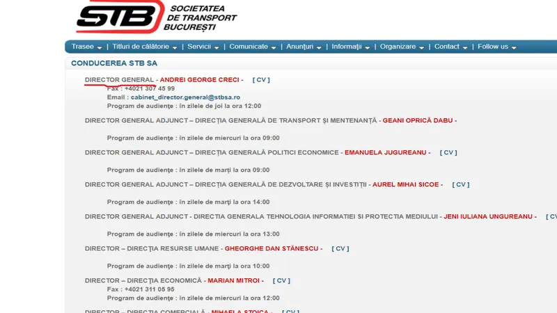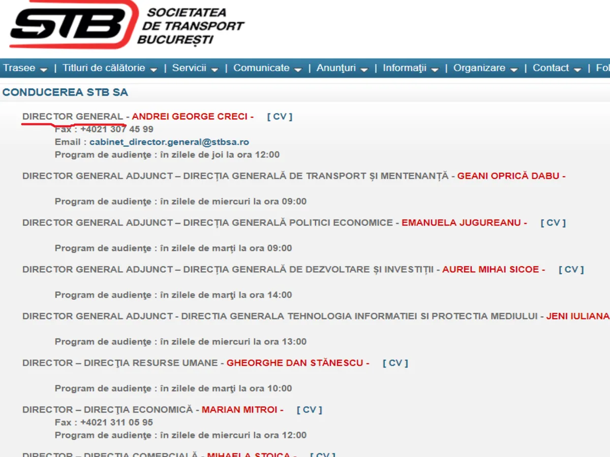 Pe lângă primarul Gabriela Firea, cel chemat să ofere un transport public decent este Andrei George Creci, Directorul General al Societății de Transport București. Societatea „înghite” sume uriașe de la bugetul Capitalei. Potrivit Primăriei București, conduse de Gabriela Firea, „pentru subventia STB, prin proiectul de buget al Primăriei București, au fost alocați, într-o prima etapă, 170 de milioane de euro”.