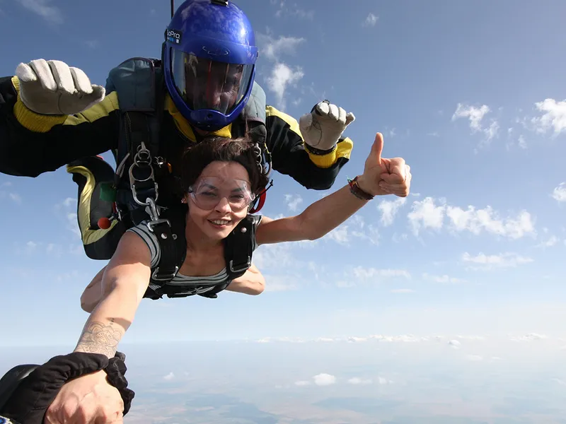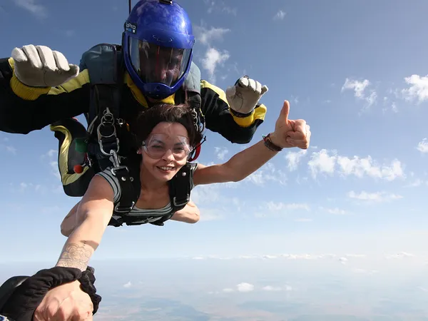 Un salt cu parașuta în tandem este o experiență care se adresează celor ce nu dețin licență, fiind o săritură în timp ce ești fixat de un instructor experimentat. Cu toate că poți avea posibilitatea de a pilota parașuta, dar instructorul rămâne în control în orice moment.