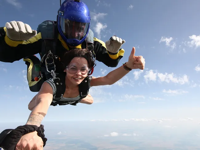 Saltul se face de la aproximativ 3000 de metri sau chiar 4000 de metri și include o cădere liberă de 30 secunde înainte că instructorul să deschidă parașuta la o viteză de 200 de kilometri pe oră. Toată experiența costă 1.300 de lei.