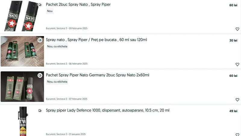 La o simplă căutare pe Internet vedem cum cu un simplu click îți poți cumpăra spray paralizant și diverse alte obiecte folosite la autoapărare.