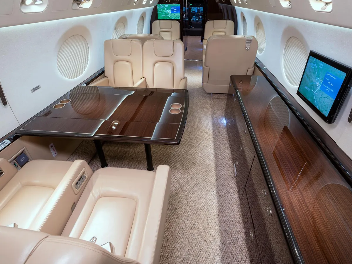 Gulfstream G550 este un avion de afaceri cu rază ultra-lungă de acțiune, cunoscut pentru autonomia sa de 6.750 de mile marine, capacitatea de a conecta continente și tehnologia avansată, precum cabina PlaneView și avionica Honeywell. Dispune de o cabină spațioasă și personalizabilă pentru până la 19 pasageri, cu dotări precum o bucătărie, o toaletă privată și Wi-Fi. Propulsat de motoare turbofan Rolls-Royce BR710, G550 oferă viteză mare și eficiență pentru zboruri critice pe distanțe lungi.