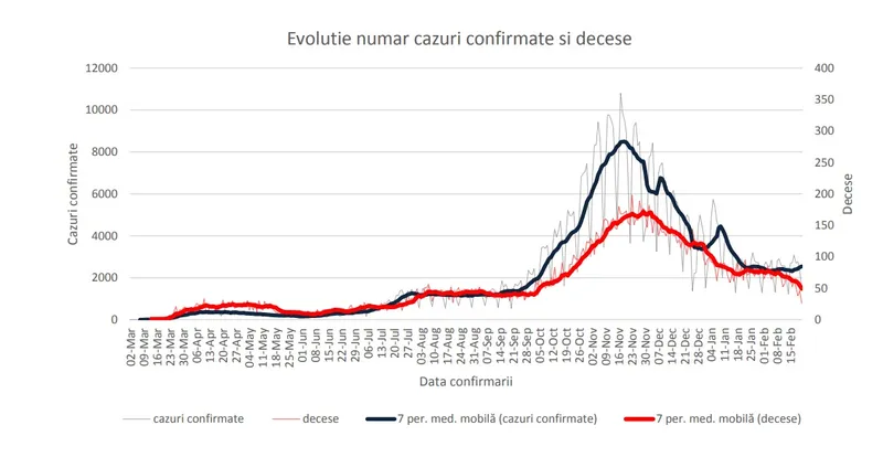 „Începând cu data de 25 septembrie 2020 s-a înregistrat o accelerare a ratei de creștere, aceasta devenind mult mai accentuată in perioada 5 octombrie – 19 noiembrie, urmata de perioada de scădere pana la data de 30 decembrie 2020. Scăderile accentuate din jurul zilei naționale a României si sărbătorilor de iarna au fost generate de o adresabilitate scăzută la testare a persoanelor cu simptome minore (preferând sa petreacă aceste minivacanțe acasă si sa se testeze după terminarea lor).