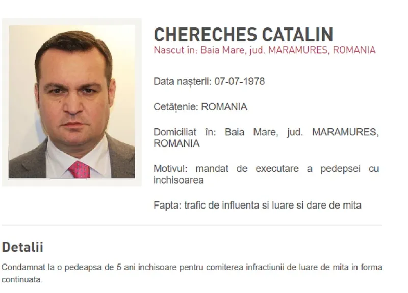 Citește și: Cătălin Cherecheș a fost prins de polițiști în Germania. E condamnat la 5 ani de închisoare