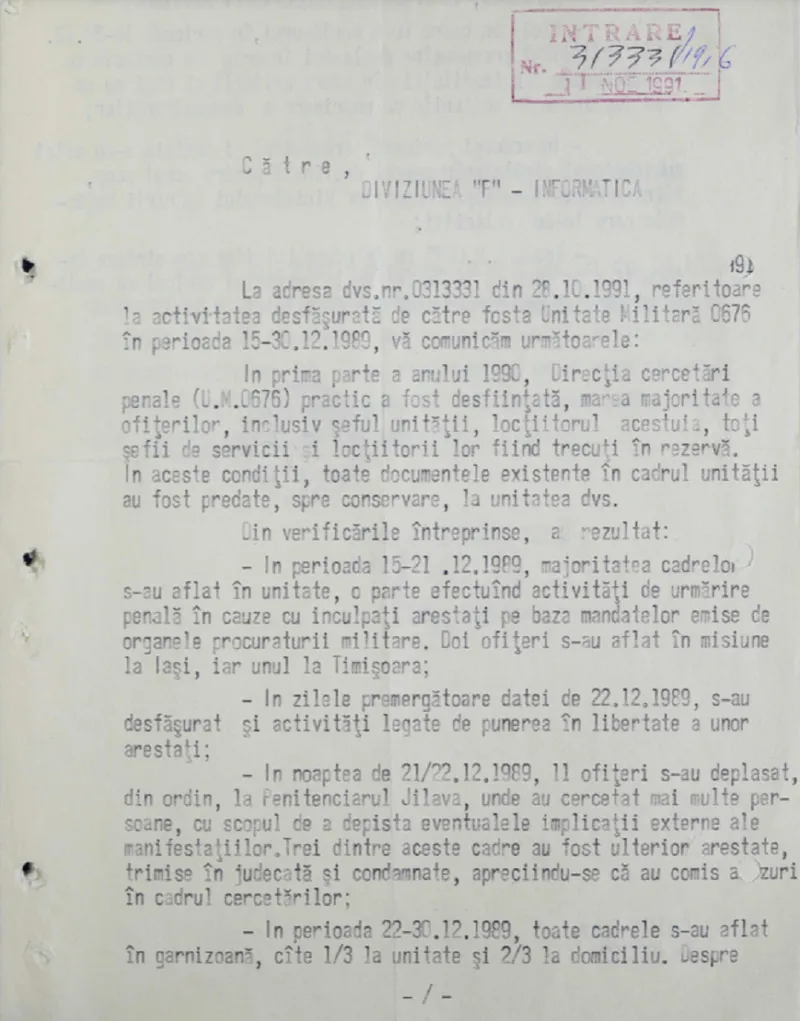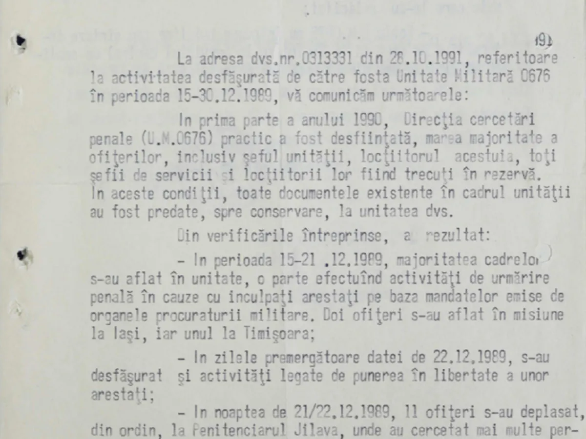 Vă prezentăm cele mai importante documente referitoare la misiunile desfășurate de cadrele de Securitate în perioada 15- 31 decembrie 1989: