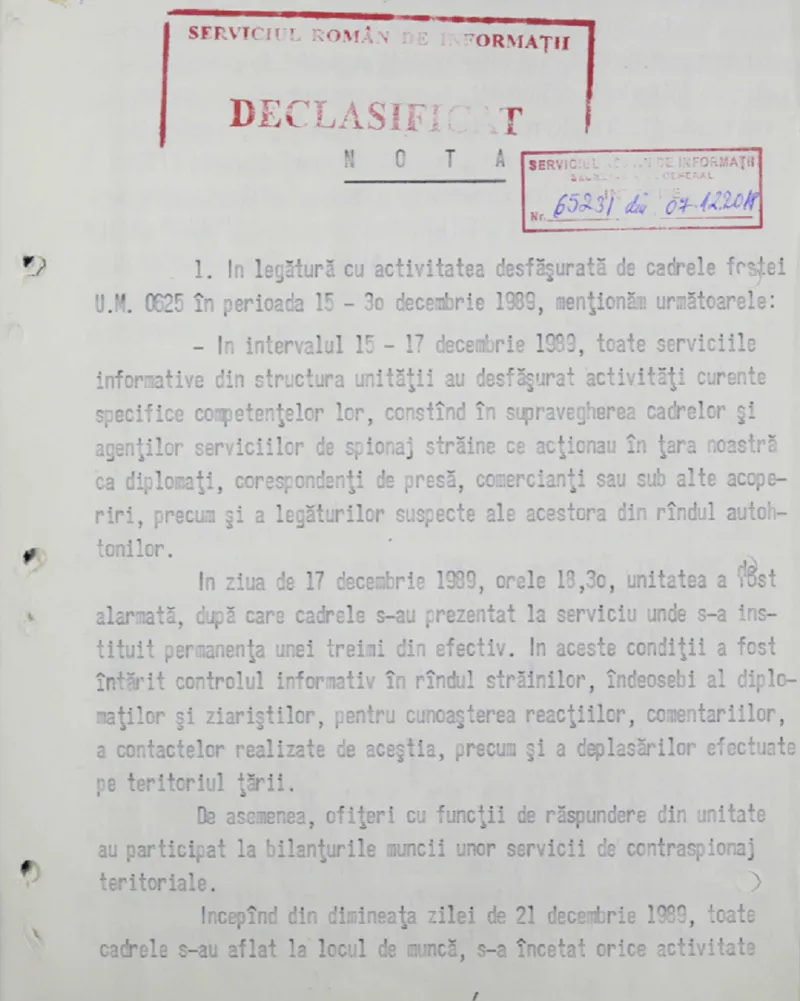 Ce misiuni au desfășurat unitățile Securității în zilele Revoluției Române. Documente declasificate