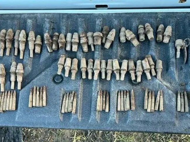 Mai multe elemente de muniţie au fost găsite, sâmbătă, de un bărbat care se plimba într-o pădure din comuna Fereşti cu un detector de metale.