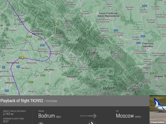 Un zbor al Turkish Airlines de la Bodrum la Moscova din 22 iunie a intrat în spațiul aerian al Ucrainei, deși este o zonă de zbor interzisă pentru avioanele comerciale, potrivit flightradar24.com.