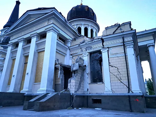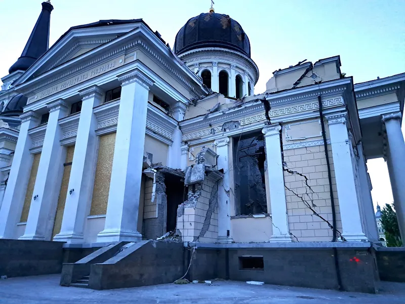 Cea mai mare catedrală ortodoxă din Odesa a fost ctitorită de un român. Lăcașul de cult, aflat în patrimoniul UNESCO, a fost bombardat de ruși. Clădirea a fost grav avariată, dar preoții ucraineni țin, în continuare, slujbe în interior.