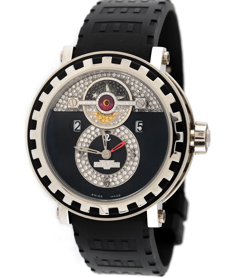 Reîntorcându-ne fața către istorie, o altă inedită prezență în licitație este brandul de colecție DeWitt, care a fost înființat în 2003 de contele Jérôme de Witt, descendent direct al împăratului Napoleon I. Ceasurile lui DeWitt sunt extrem de exclusiviste, fiind produse în ediții complicate și reduse, combinând materiale high-tech cu manufactura horologieră tradițională. DeWitt este totodată una dintre cele doar patru case horologiere din Elveția care produc singure nu doar mecanismele, dar și cadranele ceasurilor. În licitația curentă de ceasuri sunt prezente 3 modele DeWitt, între care remarcăm un exemplar DeWitt Academia Triple Complication, numărul 11 dintr-o ediție de doar 250, cu două fusuri orare și indicatori de zi și noapte, realizat din paladium și pavat cu diamante, cu un decor inspirat de coloanele imperiale ce evocă descendența întemeietorului mărcii, și care are un preț de pornire de 15.000, raportat la un preț de listă de 64.000 de euro.