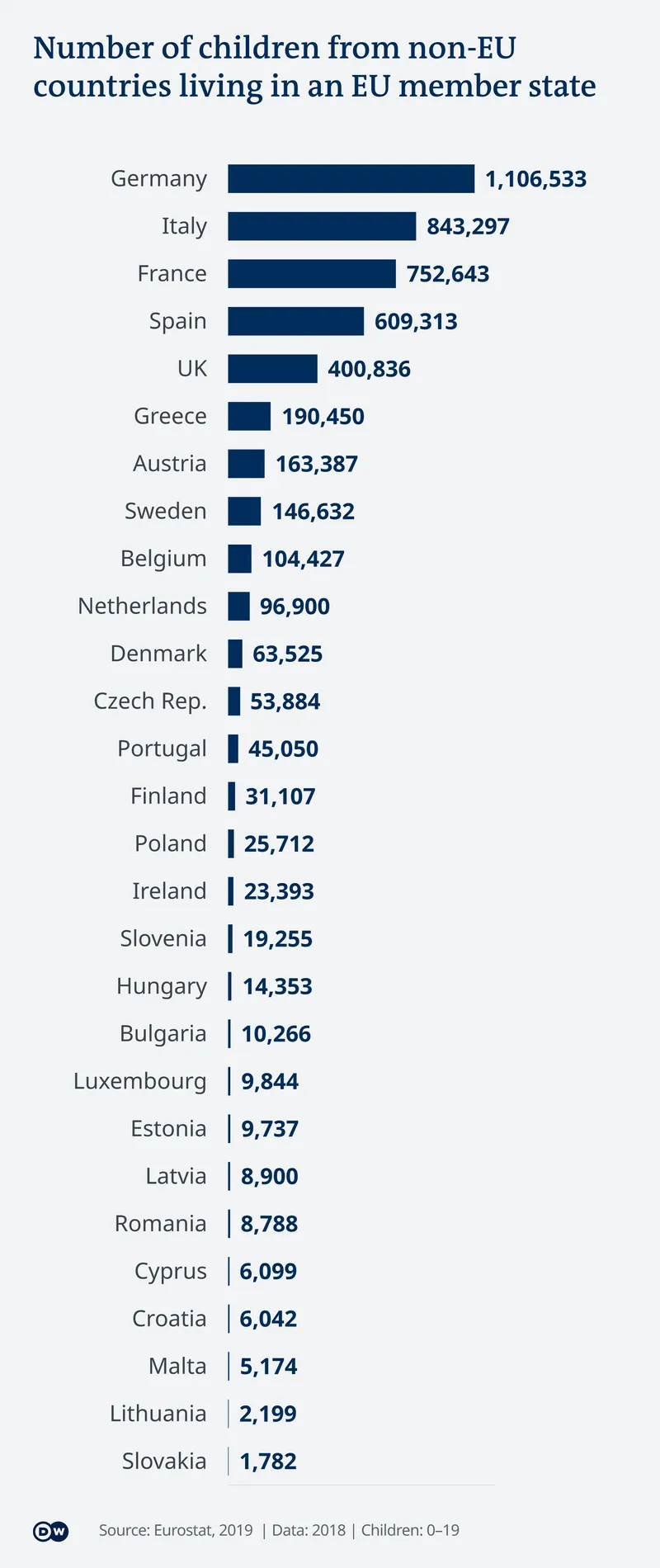 În contextul politicii germane a frontierelor deschise din timpul crizei refugiaților din 2015, nu-i de mirare că Republica Federală găzduiește numărul cel mai ridicat de copii și tineri sub 20 de ani din state terțe. Pentru 2018, autorii studiului estimează că e vorba de 1,1 milioane.