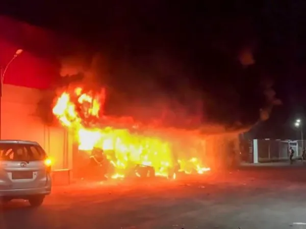 Imagini publicate în presa locală arată o clădire înnegrită de foc în spatele unei benzi de delimitare a poliţiei şi maşini arse.