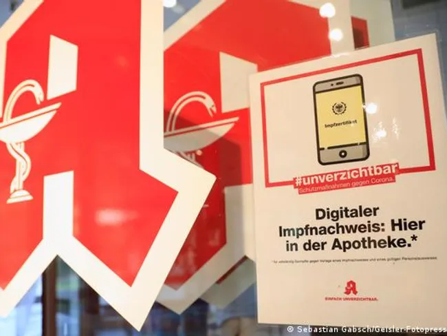 Pe ușa de intrare a unei farmacii din Berlin este atârnat un afiș care avertizează că încercările de obținere a unui certificat digital cu un carnet de vaccinare falsificat vor fi raportate la poliție. Farmacistul vrea să vorbească doar sub anonimat, între altele pentru că în magazinul său lucrează doar femei.