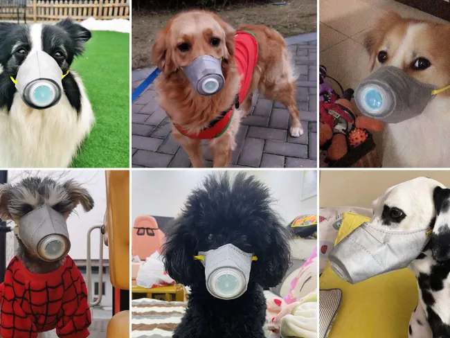 Zhou Tianxiao, în vârstă de 33 de ani, vinde din 2018 măști speciale pentru patrupede pe site-ul de comerț electronic Taobao, acestea fiind destinate inițial să ferească animalele de companie de aerul poluat.
