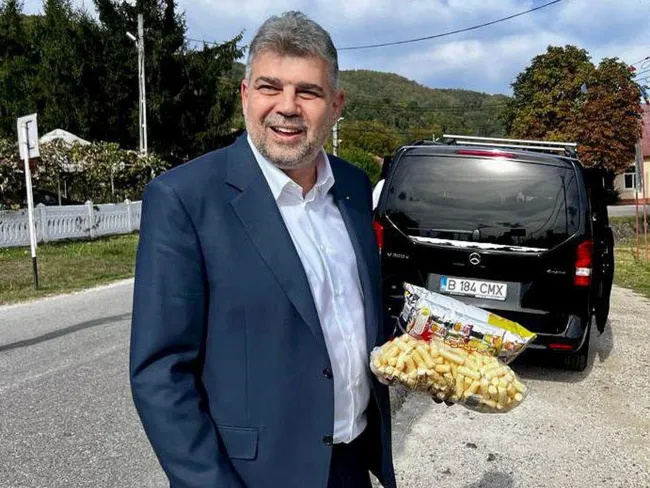 Premierul Marcel Ciolacu a intrat într-un magazin din Vâlcea, unde s-a fotografiat și stând la casă pentru a cumpăra pufuleții.