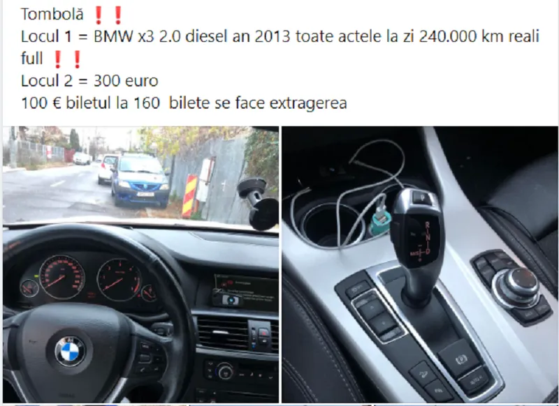Apropiații lui Nat Mincă, liderul clanului Sadoveanu din Chitila, organizează tombole cu mașini de lux. Iată unul dintre anunțuri postat de Luis Foreman: