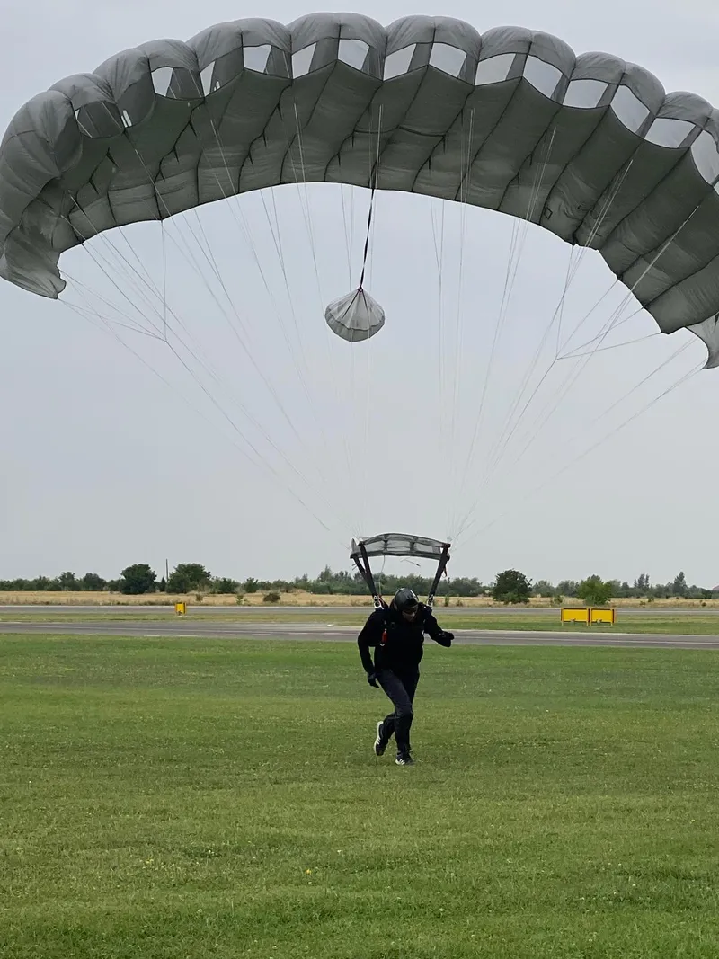 Generalul Grigore Baștan a sărit de la înălțimea de 10.000 metri, cu o cădere liberă de 7.000 metri.