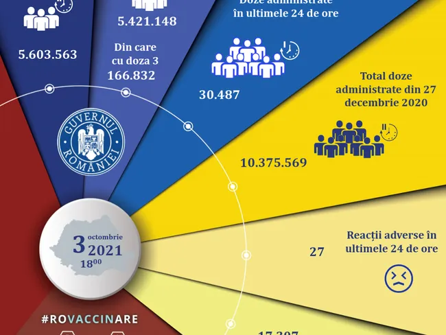 Din 27 decembrie 2020, de la începutul campaniei de vaccinare anti-COVID-19, au fost administrate 10.375.563 de doze pentru 5.603.563 de persoane, dintre care 5.421.148 au primit schema completă şi 166.832 de persoane au fost vaccinate cu doza a treia.