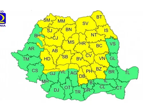 Codul galben vizează judeţele Satu Mare, Maramureş, Sălaj, Bistriţa-Năsăud, Cluj, Mureş, Alba, Hunedoara, Sibiu, Braşov, Covasna, Harghita, Suceava, Botoşani, Iaşi, Neamţ, Bacău, Vrancea, Buzău, Prahova, Dâmboviţa şi, parţial, Argeş, Vâlcea, Gorj şi Bihor.