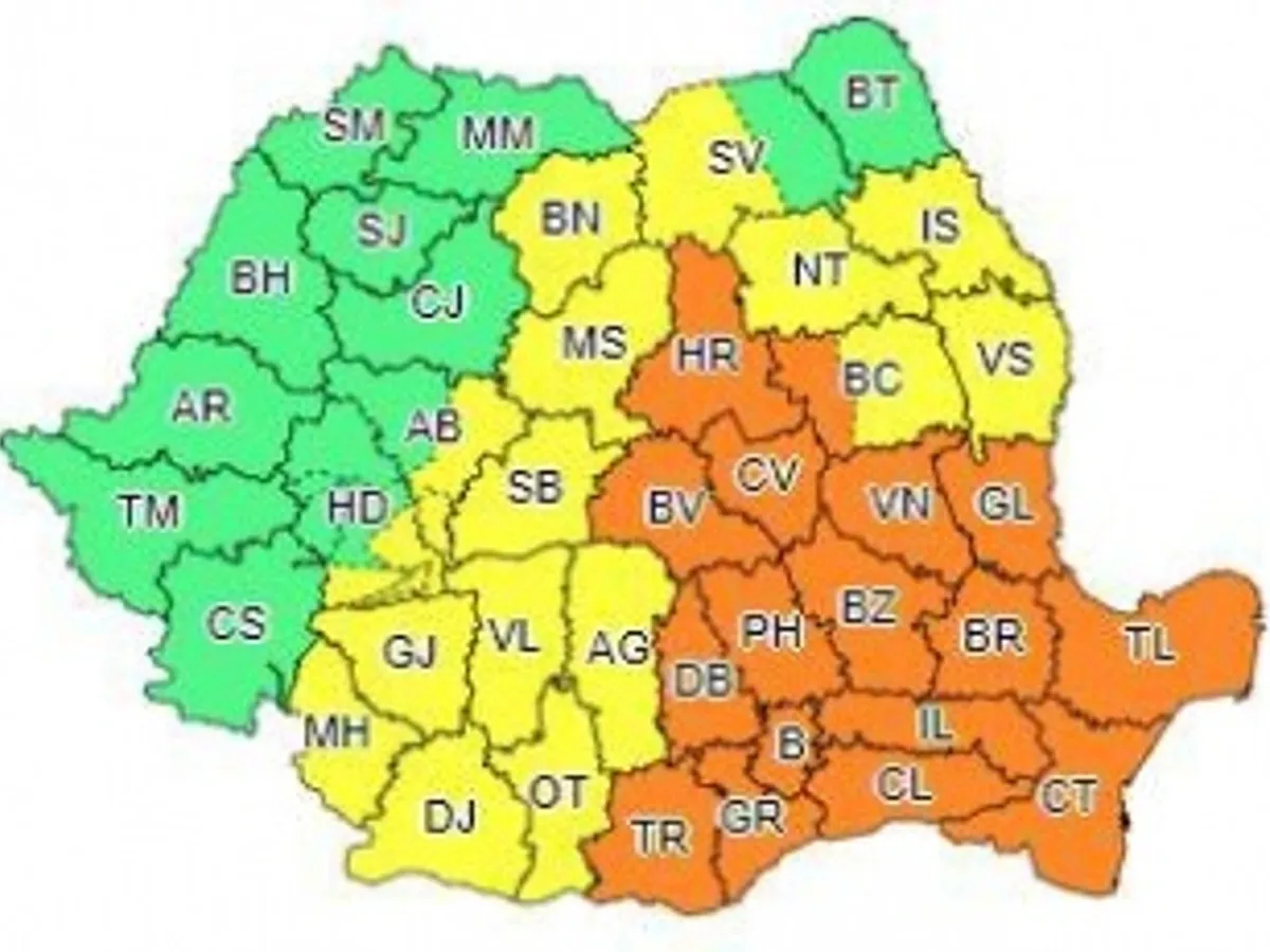 ANM a transmis și un cod galben , valabil în același interval, în mai multe județe.