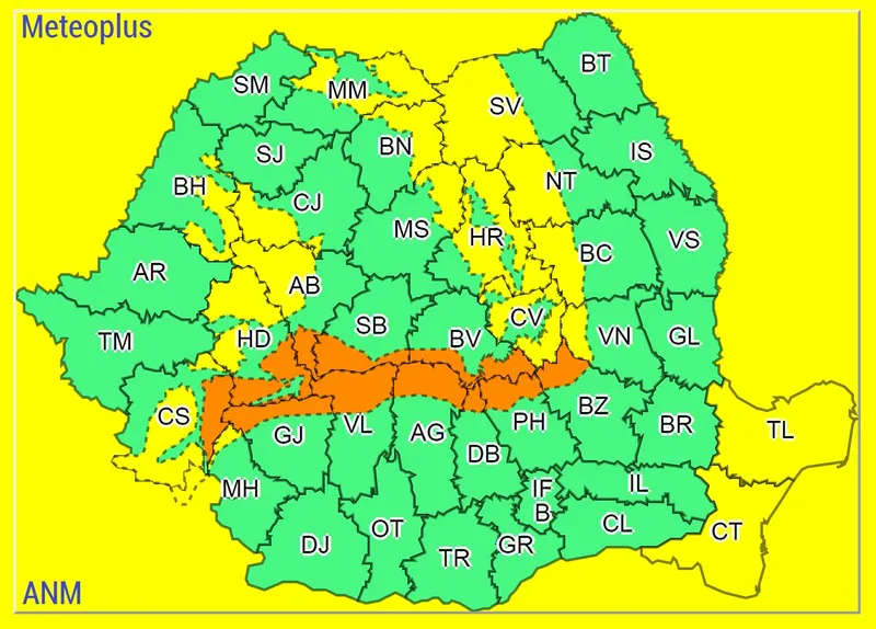 Cod portocaliu și galben de viscol, ninsoare abundentă și vijelii în 25 de județe. Iarna își intră puternic în drepturi, cu două coduri de avertizare pentru vreme rea, emise de Administrația Națională de Meteorologie (ANM).