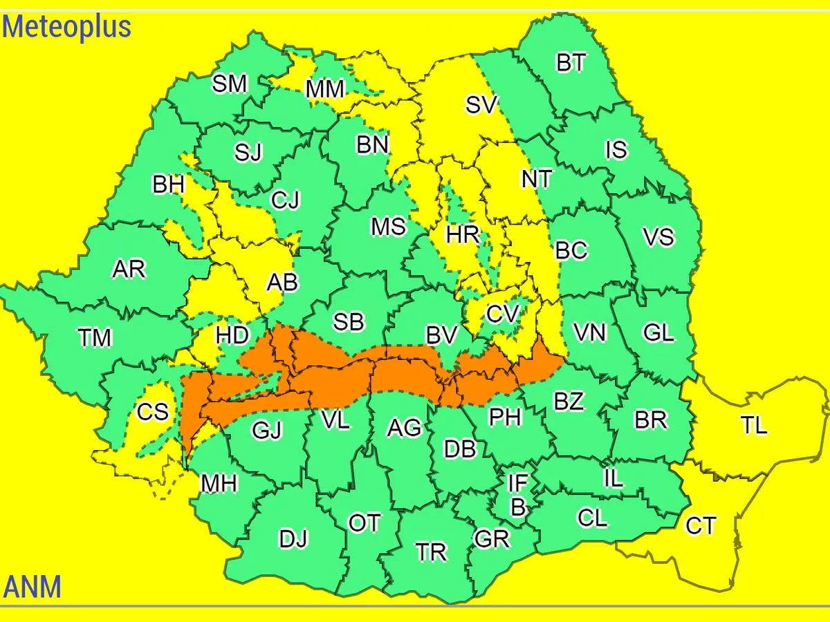 A doua avertizare, cu cod galben, este valabilă în intervalul 28 noiembrie, ora 10:00 – 29 noiembrie, ora 08:00.