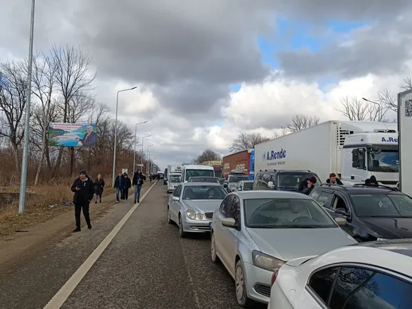 Coloana de maşini cu refugiaţi ucraineni se întinde pe 15 kilometri în vama Siret. Se așteaptă ore