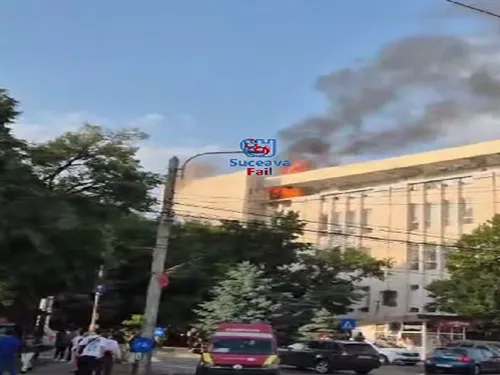 Pompierii intervin, joi, pentru stingerea unui incendiu care a cuprins sauna din incinta unei săli de sport, situată la ultimul etaj al Complexului Comercial "Bucovina" din Suceava.
