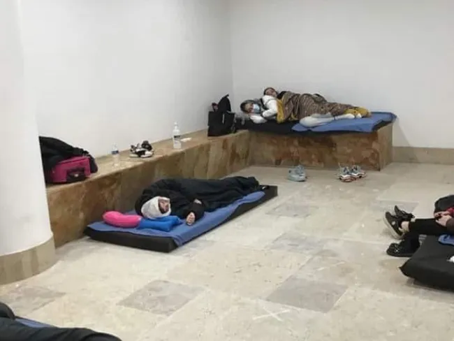 În prima parte a nopții, am stat pe jos și pe scaune, fiind ulterior numărați și renumarati, iar fetelor li se promitea de către cei din aeroport că le vor duce să doarmă în spații încălzite și cu saci de dormit. Câteva persoane au acceptat și au fost trimse într-o cameră de detenție a aeroportului, o camera foarte mică unde erau 9 locuri. Înainte de acest lucru, erau deposedate de toate lucrurile personale, care erau închise în altă parte, într-o altă cameră. Precizez că toți eram închiși cu cheia, în toate spațiile unde eram “cazați”.