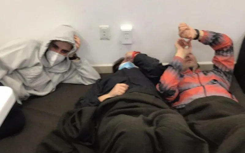 În cea de-a două seară, după ce speranțele de a ne întoarce în România erau zero, am aflat că următoarele zboruri sunt pe data de 5 Februarie. Atunci am început să cedăm de oboseală, aveam speranța spre minimum de a putea să ne odihnim și să facem un duș, unii dintre noi au început să se certe, unii nu avem saltele, practic eram că într-un scenariu de film, unde cei arestați cedează psihic. Ne-am calmat și am putut să dormim 2 ore. Precizez că în toată acesta situație, am dormit adunat maximum 4 ore de somn. De fiecare dată când ne aduceau de mâncare, o puteam primi doar după ce acceptam să ne facă poze cu mâncarea și apă în mâna. Ne-au pus să semnăm că primim mâncare.