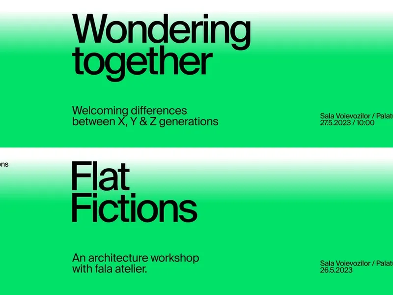 Păstrând tema conferinței generațiilor, biroul de arhitectură fala.atelier va organiza, pe 26 mai, workshop-ul Flat fictions – despre arhitectură și reprezentare, colaj și esențializare. Indiferent că fac parte din gererația X, Y sau Z, participanții vor fi selectați în baza unei aplicații: un colaj pornind de la formele colorate ale lui Ellsworth Kelly.