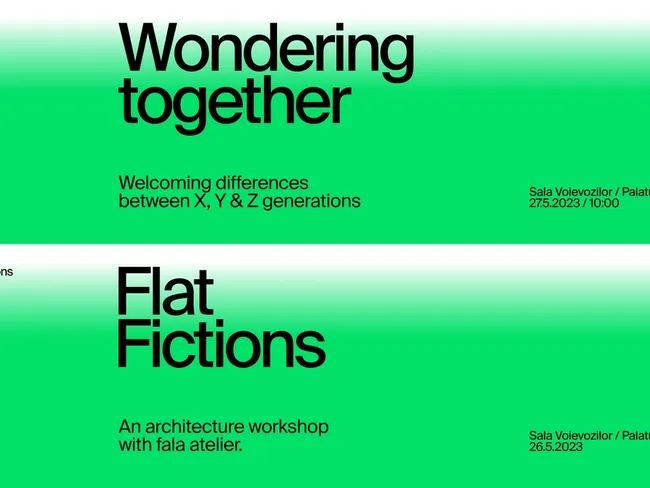 În strânsă legătură cu programul conferinței, pe 26 mai, biroul de arhitectură fala.atelier, din Portugalia, va organiza workshop-ul Flat fictions, precedat de un call for applications dedicat creativilor din generațiile X, Y și Z.