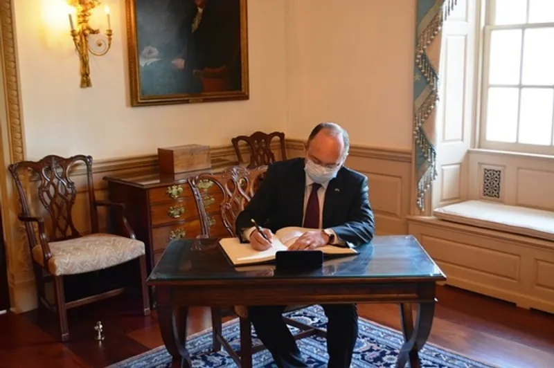 Ministrul Bogdan Aurescu i-a prezentat omologului american, cu ocazia întrevederii, o selecţie de copii ale unor documente istorice care au marcat evoluţia celor 140 de ani de relaţii diplomatice româno-americane.