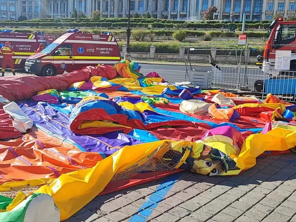 Incident la festivalul Oktoberfest din Capitală. Un tobogan gonflabil s-a răsturnat din cauza vântului, iar patru copii au fost răniţi.